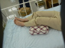 | ① 要介護者の姿勢に負担をかけない為ひざ下に枕程度の高さをあてがう |